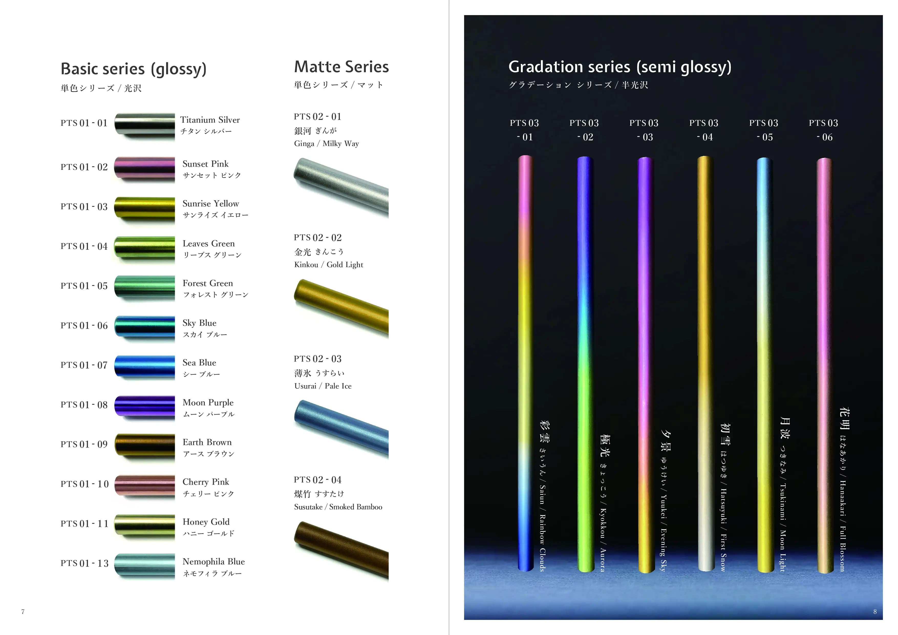 人工骨にも使われる、アレルギーフリーな金属のチタンから自然な発色を引き出し、美しい色が揃っています。